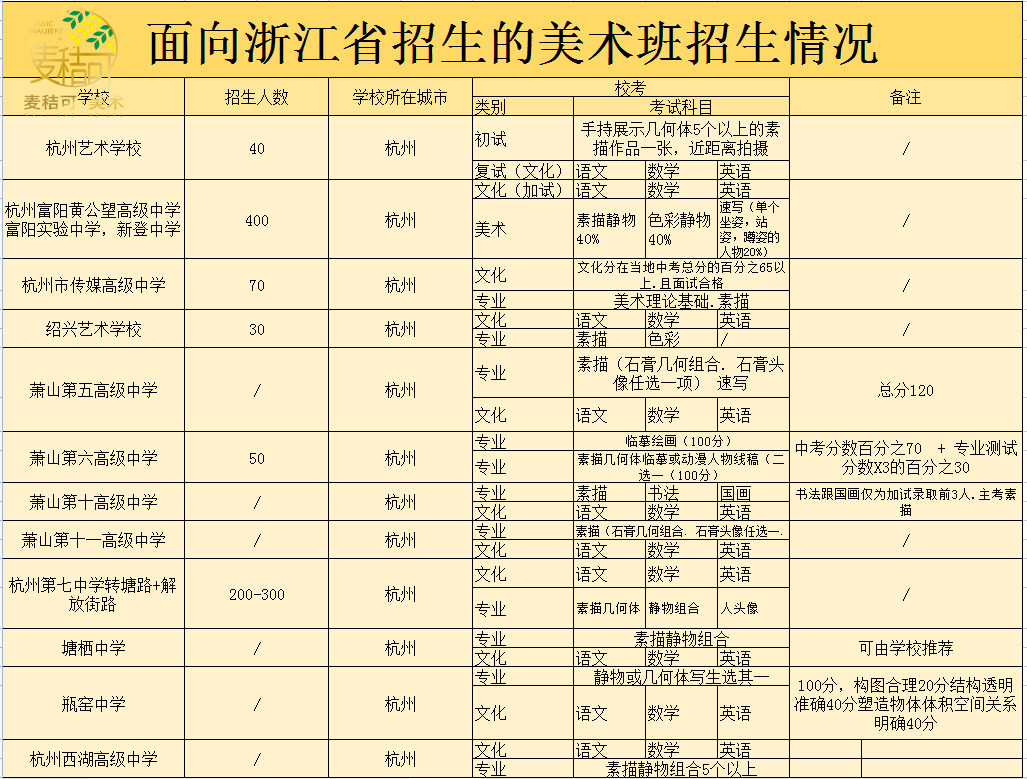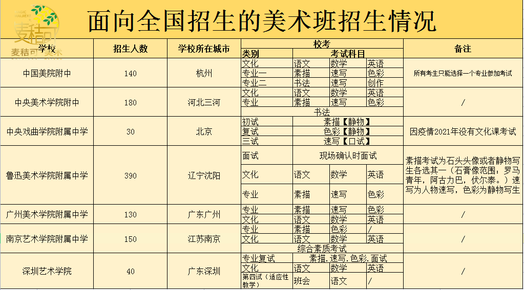 麦秸可搜集了一些中考涉及到美术的学校
